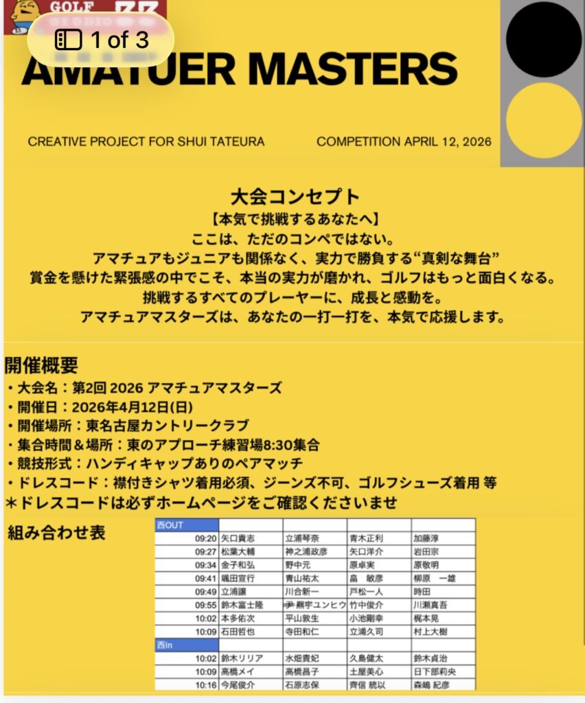第二回アマチュアマスターズ詳細 投稿日 2026-03-15 更新日 2026-03-16 著者 golf studio 33 カテゴリー Uncategorized Screenshot Screenshot この記事を書いた人 golf studio 33 記事一覧